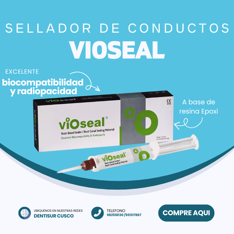 Vioseal de Spident es un cemento sellador de conductos radiculares a base de resina epoxi, presentado en jeringa doble pasta-pasta para una mezcla automática y sencilla. Ofrece excelente biocompatibilidad, alta radiopacidad, sellado hermético y efecto antibacterial, siendo ideal para la obturación permanente en endodoncia, incluso reabsorbiéndose sin inflamación ante una extrusión.