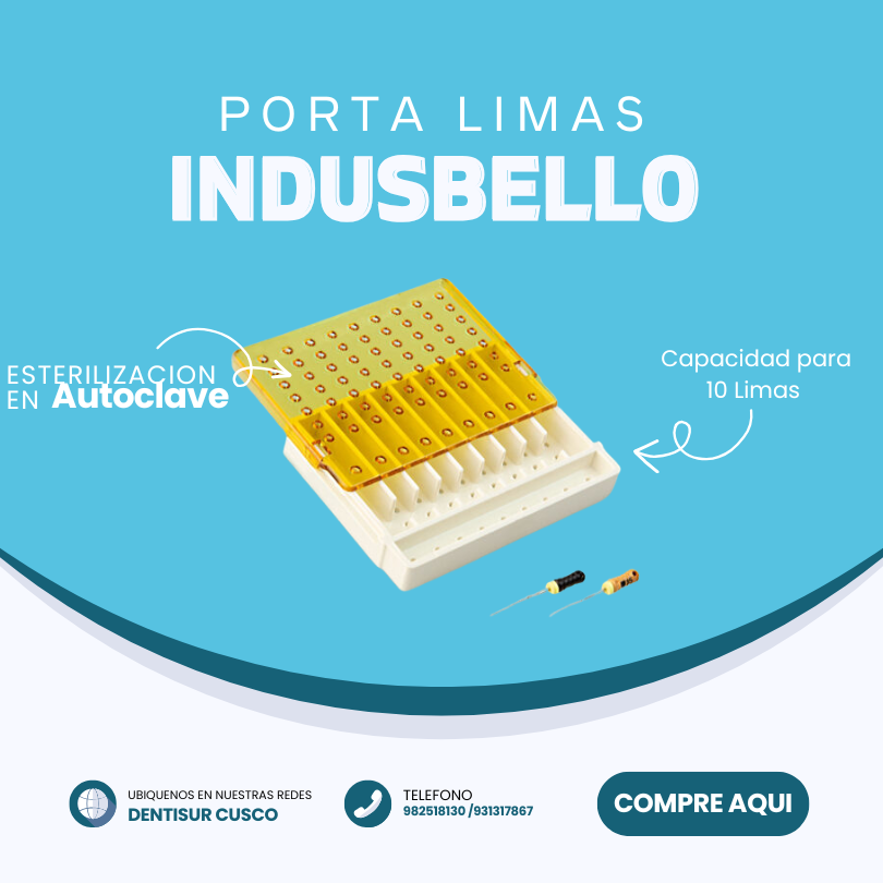 El estuche porta limas Indusbello es un organizador autoclavable diseñado para esterilizar, almacenar y transportar limas endodónticas manuales y rotatorias de forma segura. Cuenta con nueve compartimentos para organizar secuencias de trabajo, una tapa transparente para fácil visualización y una cavidad adicional para brocas de apertura coronaria, mejorando la seguridad y el flujo de trabajo en la clínica.
