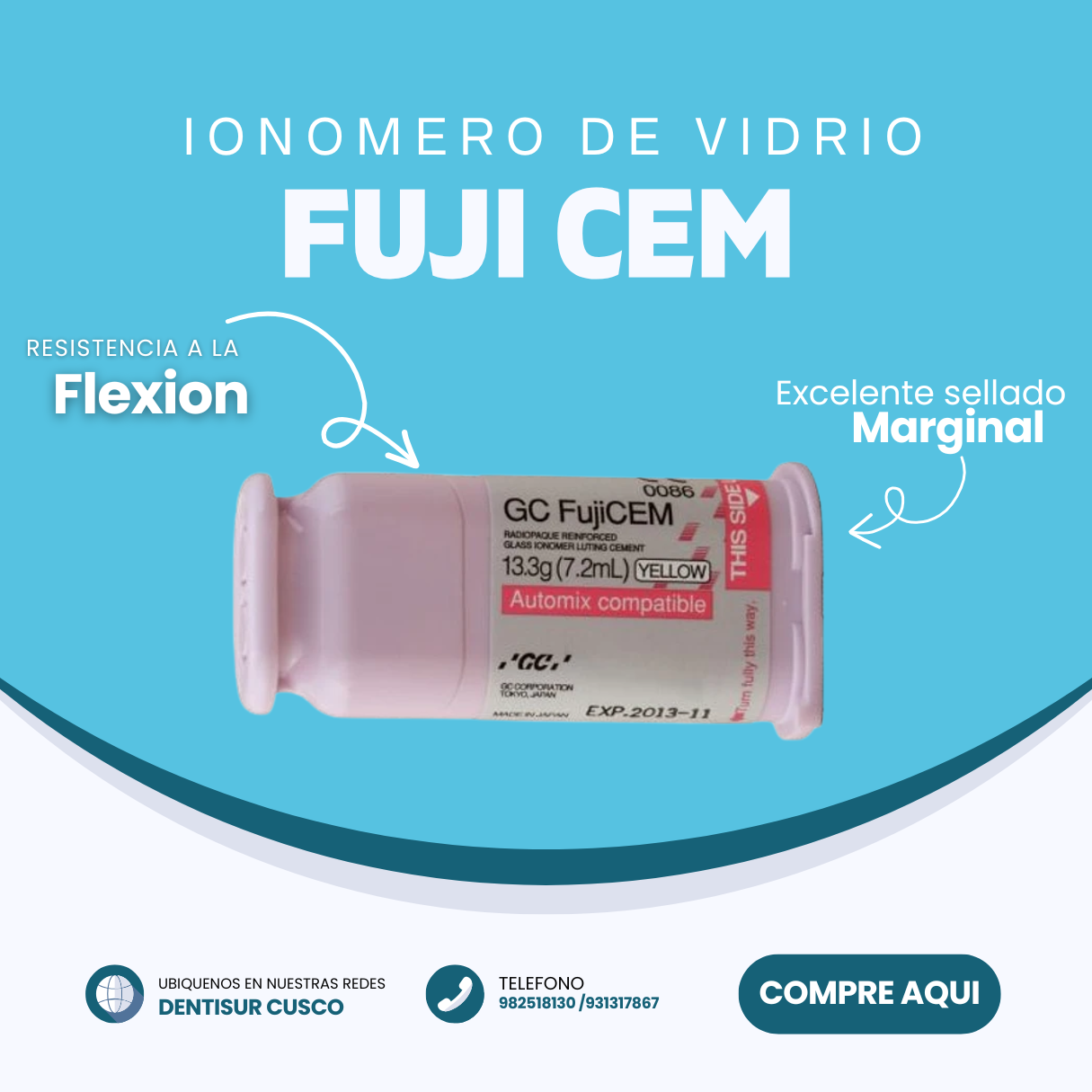 GC FujiCEM™ – Paste Pak Ionómero reforzado con resina GC FujiCEM es el primer Ionómero de Vidrio reforzado con resina a nivel mundial en presentación pasta-pasta, que permite cementar restauraciones indirectas – coronas y puentes de porcelana o resina fusionados a metal así como inlays y onlays de porcelana, metal y resina.